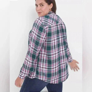 Lane Bryant Relaxed Long-Sleeve Button-Front Pink Plaid Boyfriend Shirt Sz 14 1X