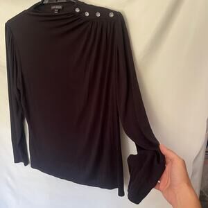 Black Lane Bryant Long Sleeve Popover Cowl Neck Blouse with Rhinestone Bling