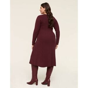 Lane Bryant Rib Sweater A Line Midi Dress Size 10/12 maroon Holiday Fall