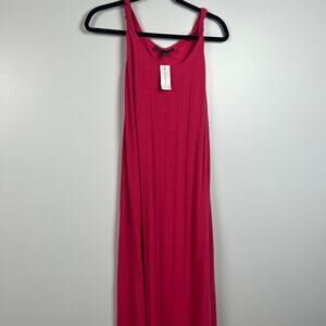 Brand new Lane Bryant ribbed twisted strap pink midi dress with tie at the waist and small slits on the sides.