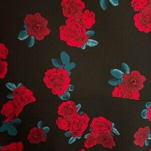 Lane Bryant Rockabilly Dress Black Red Floral Rose Roses Plus Size 28 Fit Flare