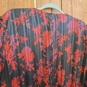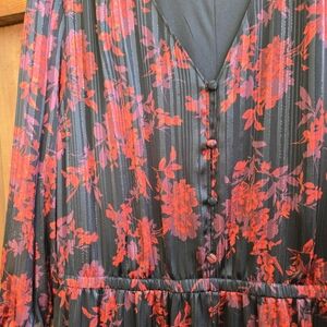 Beautiful Lane Bryant Romantic Floral Maxi Dress, Size 24. Nice red floral design with a button accent V neckline and sheer sleeves.
