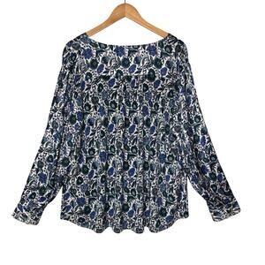 Lane Bryant Ruched Button Blouse Floral Satin Soft Knit Office Sz: 18/20 Green
