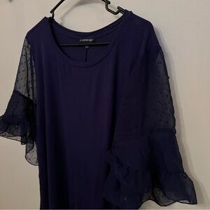 Lane Bryant Ruffle Sleeve Blouse Top Blue 26