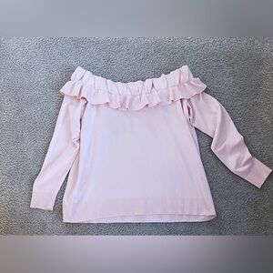 Lane Bryant Ruffled Pink Off The Shoulder Sweater Office Fall School Casual