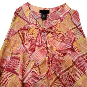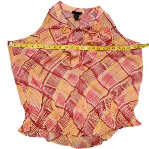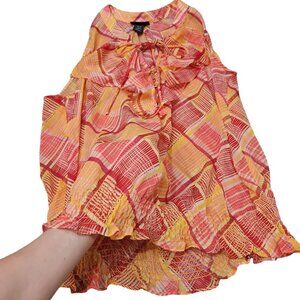 Lane Bryant Ruffled Printed Sleeveless Orange Sheer Blouse Top V-Neck 14/16