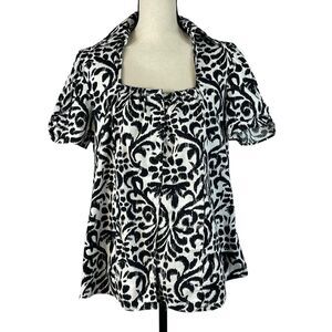Lane Bryant SZ 14/16 Button-Up Top Floral Puff Sleeves Collared Square Neck
