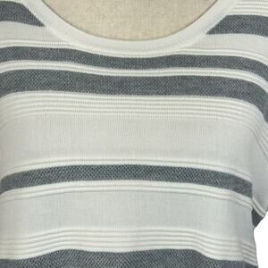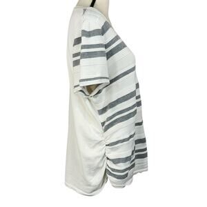 Lane Bryant SZ 14/16 Sweater Top Striped Cap Sleeve Round Neck Ruched Side White