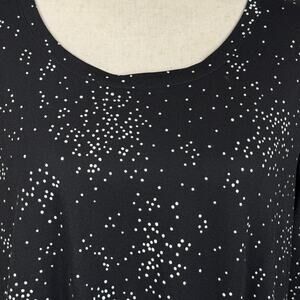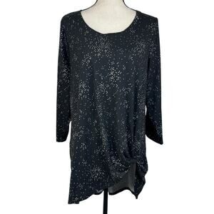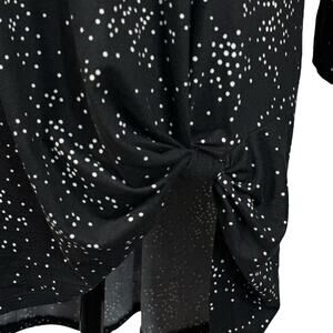 Lane Bryant SZ 14/16 Tunic Top Stretch Polka Dot 3/4 Sleeve Hi-Low Hem Knotted