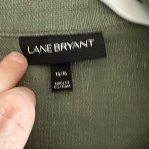 Sage utility jacket with a draped front. Features multiple pockets and a stylish design.