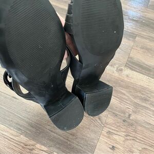 Lane Bryant Sandals Women's 8W Wide Dream Cloud Black Chain Cross Block Heel