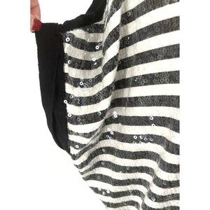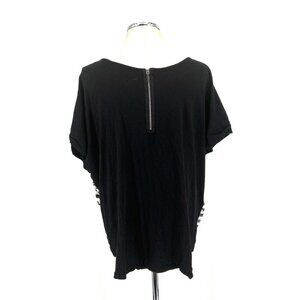 Lane Bryant Sequin Top Sz 26/28 Black White Short Sleeve Zip Back Cotton Blend