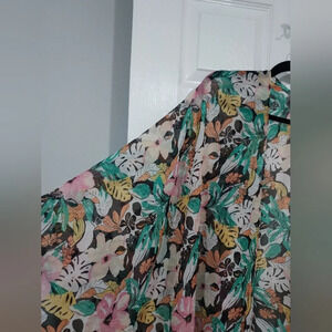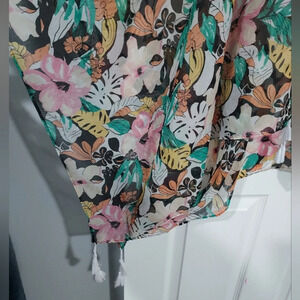 Lane Bryant Sheer Floral/Tropical Tasseled Scarf Ruana in Size One size