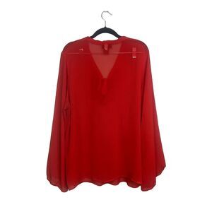 Lane Bryant Sheer Long Sleeve Flowy Lightweight Tie Neck Blouse 18 20 Red