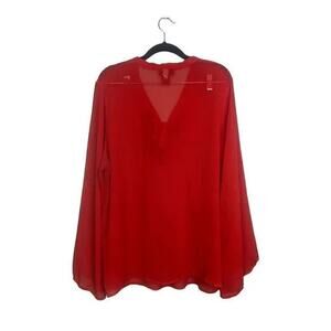 Lane Bryant Sheer Long Sleeve Flowy Lightweight Tie Neck Blouse 18 20 Red #2965
