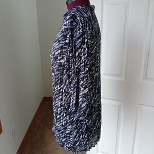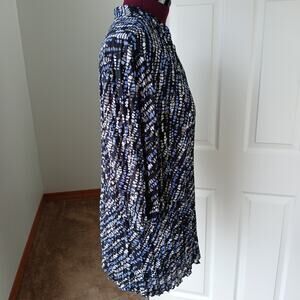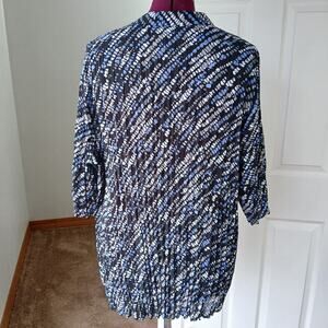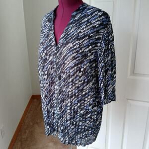 Lane Bryant Sheer Pleated Blouse size 22/24 black mosaic buttons short sleeve