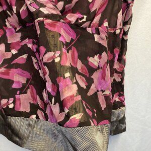 Lane Bryant Sheer V-Neck Short Flutter Sleeve Blouse Women Sz 14/16 Brown Floral