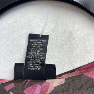 This Lane Bryant blouse features a beautiful brown floral pattern and a V-neckline with flutter sleeves. Zipper Hook & Eye closure and lightweight chiffon fabric make it perfect for travel, workwear, or casual occasions. It is machine washable and easy to care for. The blouse is a size 14/16, with a regular fit and plus size type. The garment care is excellent, and it is not handmade. The blouse is a basic style with a flower theme, and it is suitable for summer, fall, and spring seasons. The zipper accents add a touch of elegance to the blouse.