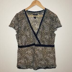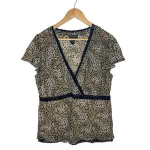 Lane Bryant Sheer Wrap Front Butterfly Short Sleeve V-neck Leopard Print Top