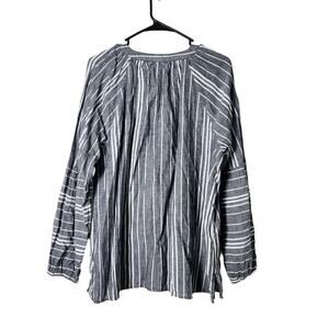 Lane Bryant Shirt Blouse Plus Size 16 Blue Striped Long Sleeve Button Up Linen