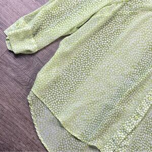 Lane Bryant Shirt Women 22 Kelly Green Animal Print Sheer Button Front Career
