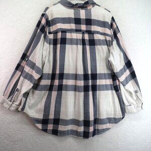 Lane Bryant Shirt Womens 22/24 Plaid Button Polka Dot Trim Roll Tab Sleeve