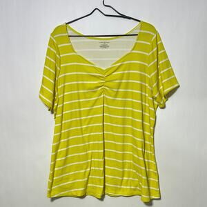 Lane Bryant Shirt Womens 22/24 Yellow White Short Sleeve Ribbed Knit Sweetheart