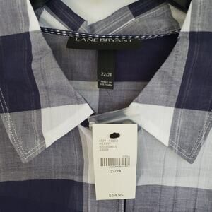 Lane Bryant Shirt Womens Plus Size 22/24 Plaid Blue Gray Button Up Collared New