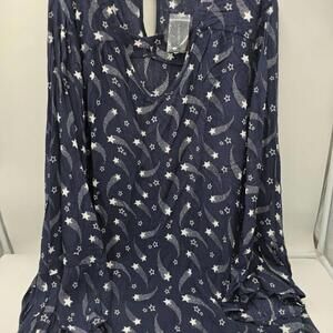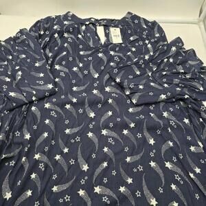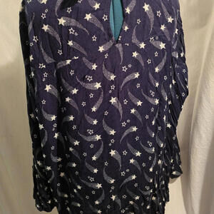 Add a touch of celestial charm to your wardrobe with this beautiful Lane Bryant blouse. The blue blouse features a shooting star design and bell sleeves, perfect for adding a feminine touch to any outfit. This blouse is a size 24 and is ideal for plus-sized women. The blouse is made from high-quality materials and is designed to last.