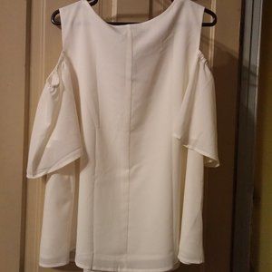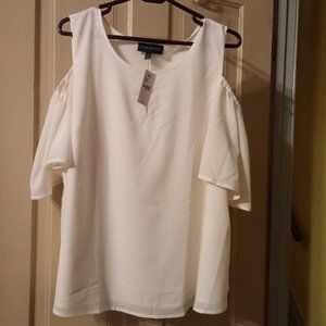 Lane Bryant Shoulderless Short Sleeve Blouse White Polyester Keyhole Top Size 18