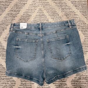 New with tags, mid-rise size 20 , 76%Cotton 22%Polyester 2%Spandex , it has some stretch. A2
