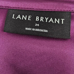 Lane Bryant Silky Plum V Neck Button Down Blouse, Size 24
