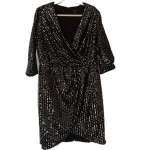 Lane Bryant Silver Sequin & Black Velvet Crossover Dress