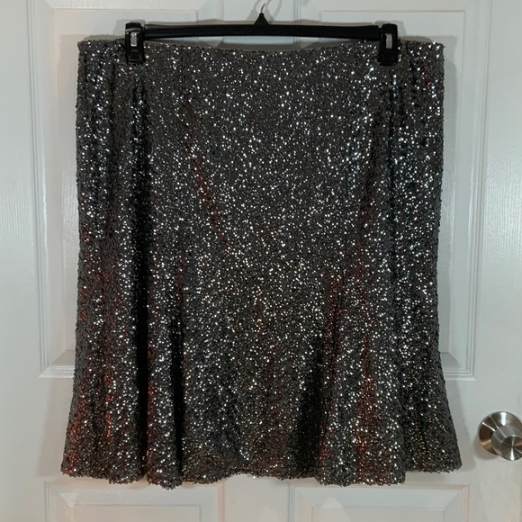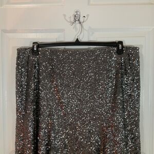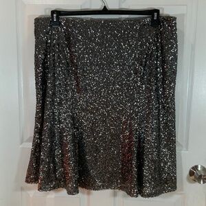 Lane Bryant Silver Sequin Elastic Waist Party Holiday Skirt Plus Size 24 New