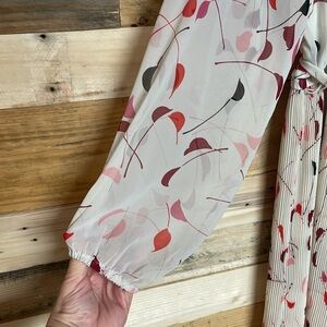 Lane Bryant Size 14 Long Sleeve Leaf Print Midi Lightweight Button Down Dress