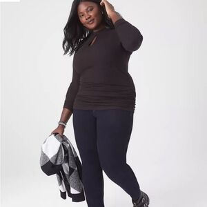 Lane Bryant Size 18 20 Fitted Cutout-Neck Side Ruched Ribbed Black Tunic Top NWT