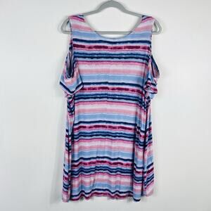 Lane Bryant Size 18 20 Striped Cold Shoulder Top Casual Colorful