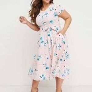 Lane Bryant Size 18 Lena High Low Dress Pastel Pink Blue Floral Modest Feminine