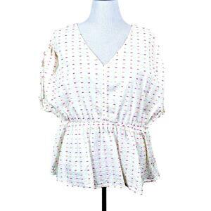 Lane Bryant Size 18/20 Plus Textured Peplum Blouse Dolman Sleeve White