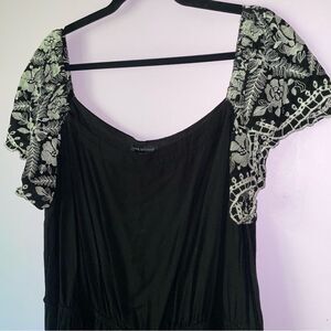 Lane Bryant Size 22 Maxi Dress Black Embroidered Off the Shoulder Boho