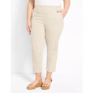Lane Bryant Size 24 Linen Blend Slim Ankle Mid Rise Elastic Waist Beige