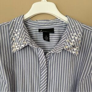 Lane Bryant Women's Size 24 Striped Button Up, Long Sleeve Collared Shirt with Rhinestone Collar