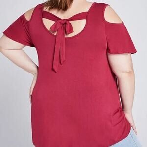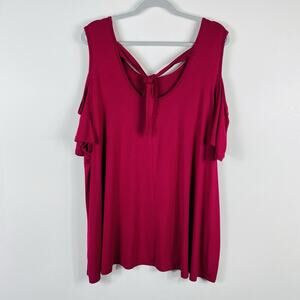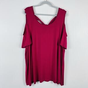 Lane Bryant Size 26 28 Cold Shoulder Tie Back Swing Tee Top Pink Jersey Knit