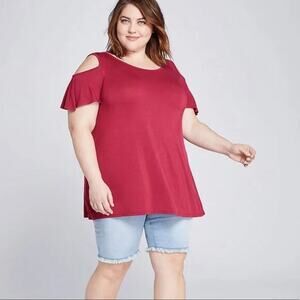 Women's Lane Bryant pink jersey knit cold shoulder tie back swing tee