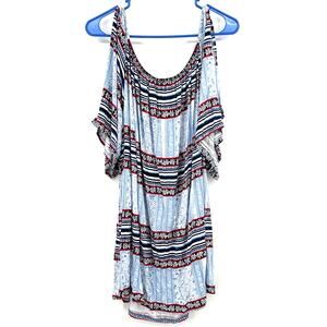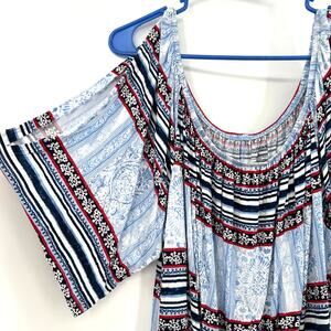 Lane Bryant Size 26 / 28 Off the Shoulder Boho Shirt Top Blouse Blue Striped