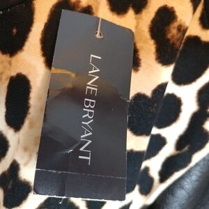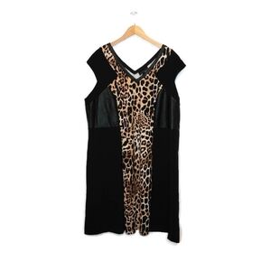 Lane Bryant Size 26 Double V Neck Dress Black Leopard Print A Line Cap Sleeve