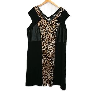 Lane Bryant Size 26 Double V Neck Dress Black Leopard Print A Line Cap Sleeve
