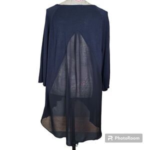 -Lightweight, Three Quarter Length Sleeves, Long Flowy Sheer Back Panel, Sweater