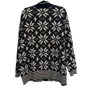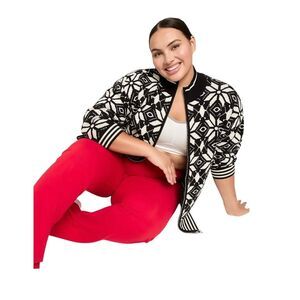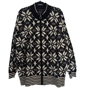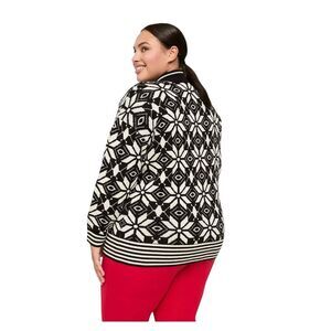 Lane Bryant Size 2X 18/20 Jacquard Zip Sweater Jacket Black White Snowflake Knit