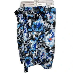 This beautiful Lane Bryant skirt in size 20 features a stunning floral pattern in shades of blue. The high waist and belted waist add a touch of elegance to the knee-length straight and pencil style. Perfect for any occasion, this skirt is a must-have for any woman's wardrobe. The floral pattern is sure to make you stand out in a crowd, and the versatile style can be dressed up or down. Don't miss out on this amazing piece!